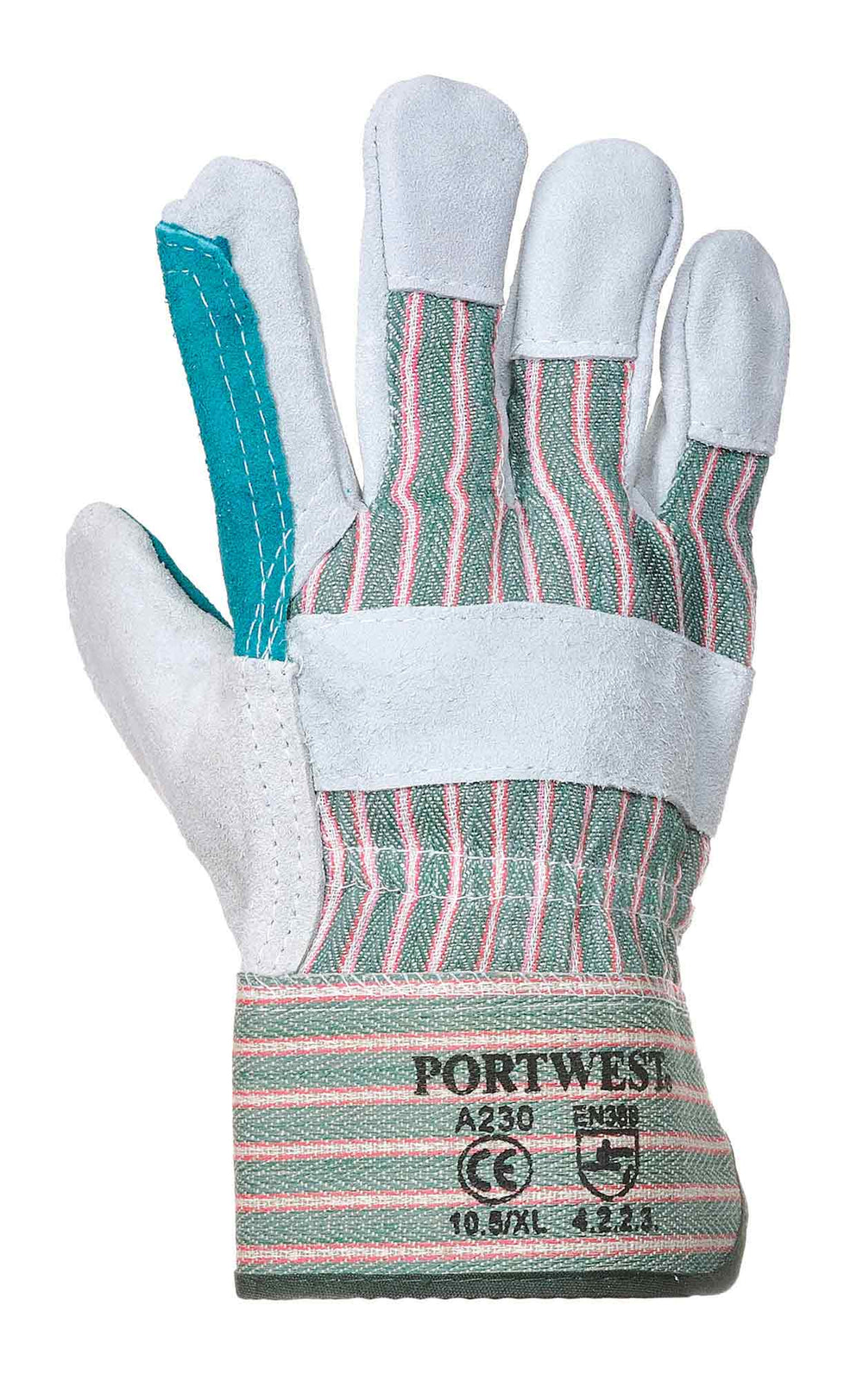 The Portwest A230 Leather Rigger 365 Cow Split Reinforced Palm Glove features: