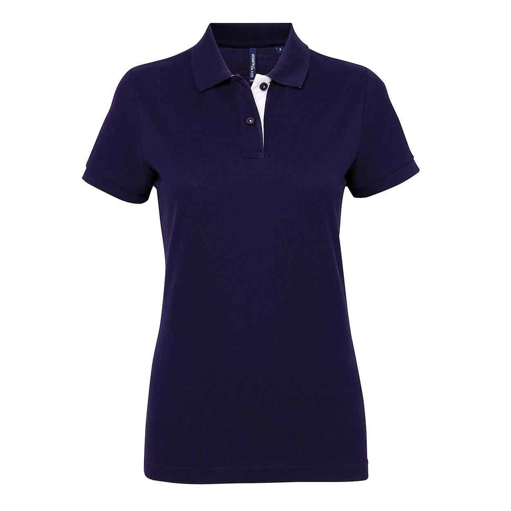 The Asquith & Fox AQ022 Women's contrast polo features: Fitted polo for women with contrast collar and placket. Two contrast coloured buttons on placket. Contrast colour on side vents. Twin needle stitching on hem. Ribbed knit collar and sleeve cuffs. Washing Instructions Domestic wash at 40c. The iconic style polo now available in a feminine fashionable fit. Decorate with a colour to match the underside of the collar for a co-ordinated look.Fabric100% Ringspun combed cotton. Heather/Navy: 85% Ringspun cotton, 15% ViscoseWeight200gsmSize Guide. XS - 2XL. XS 8(33) S 10(35) M 12(37) L 14(39) XL 16(41) 2XL 18(43)
