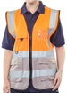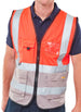 Orange Hi Vis executive waistcoat, 100% Polyester, Front zip fastening, Two large front pockets with flaps, Mobile phone pocket with hook and loop fastening flap, Radio loop, Pen & pencil pockets, Transparent ID pouch pocket, Retro-reflective tape, Covered mesh back panel, EN ISO 20471 Class 1 high visibility