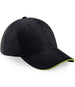 Tearaway label for ease of rebranding. 6 panel design. Mid profile. Pre-curved peak. Contrasting colour sandwich peak. Structured front panels. Perfect for print and embroidery. Self fabric strap with tri-glide buckle. Reach certified.