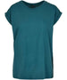 Sporty with a pair of jeans; feminine with a skirt – the women's extended shoulder tee is a casual basic item for everyday wear. With a long cut and short sleeves, this is a shirt that stands out. Matching stitching and a round neckline add to the look. Made of cotton with a single Jersey knit, it can be decorated to your heart’s desire with screen or flex printing. This item is manufactured in a FAMA Certified factory. FAMA stands for Facility and Merchandise Authorisation and is a high standard production certificate.