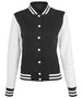 The college style presents itself as a cool stylish women's jacket with contrasted cuffs to offer a preppy look and feel. The inside brushed sweat fabric ensures a comfortable fit. Typical details include; striped rib cuffs at the collar, hem and sleeves and metal press-buttons to emphasise the cool look. Two pockets on the front, set-in sleeves and neck half-moon with neck tape. This item is manufactured in a FAMA Certified factory. FAMA stands for Facility and Merchandise Authorisation and is a high standard production certificate.