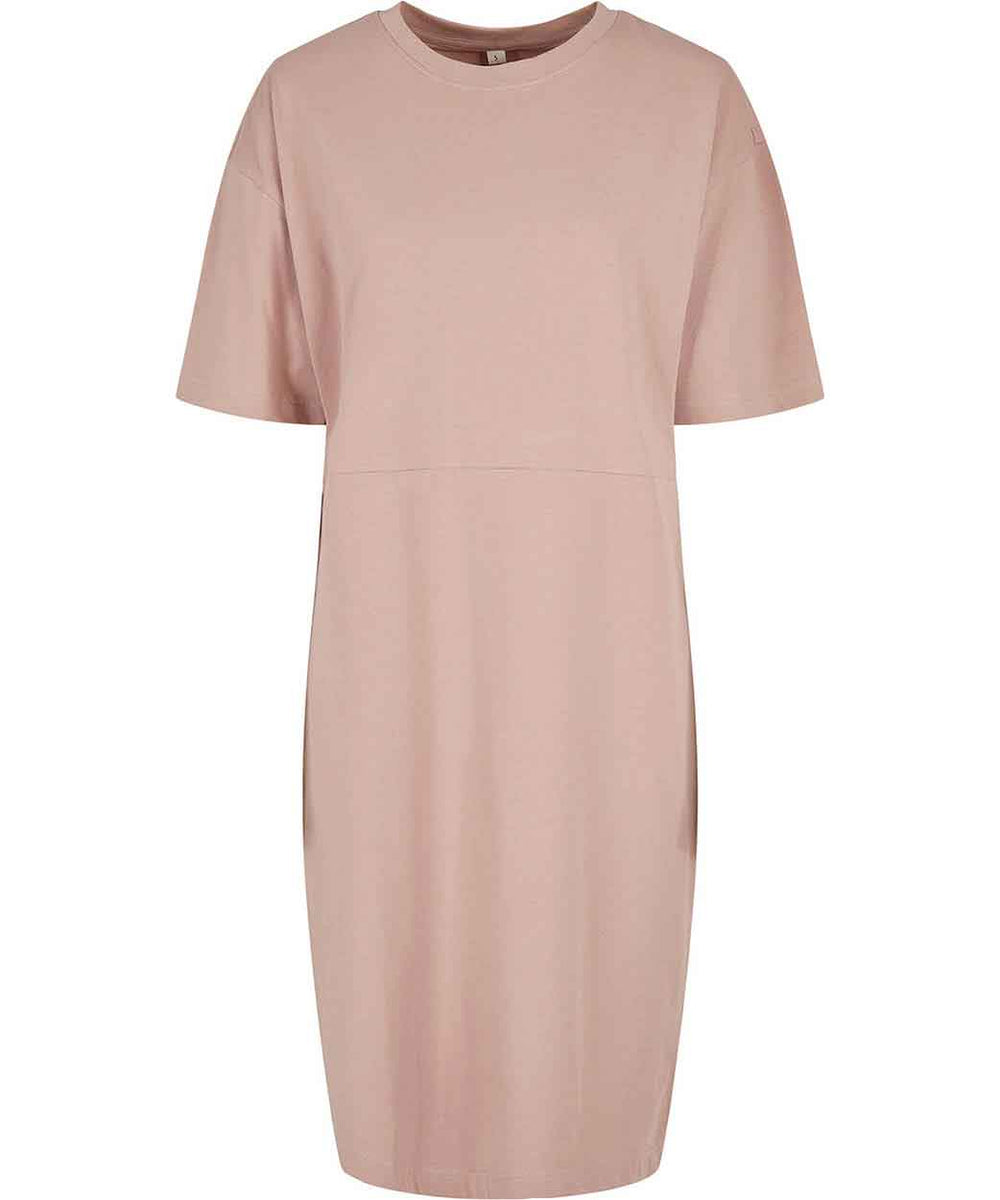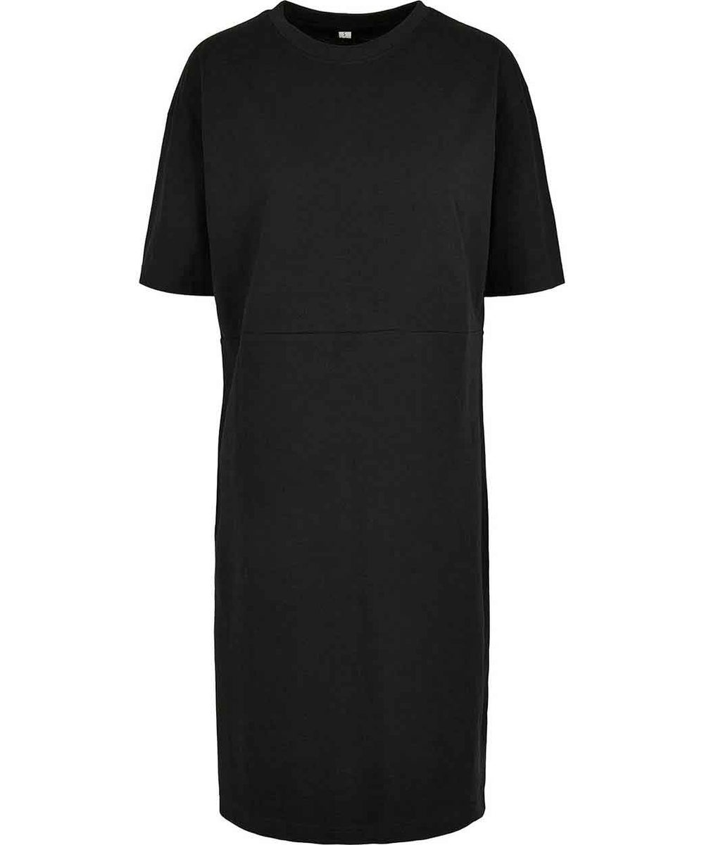 With an urban look, plus an extra touch of casual, this eye-catching dress employs a straight, oversized cut. The upper body area is strongly reminiscent of a relaxed tee and, from the hips, is slit on the right, which heightens both wearer comfort and visual appeal. The dividing seam is at waist level and the shoulders are dropped. The dress can further be refined via embroidery or print options.