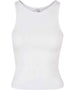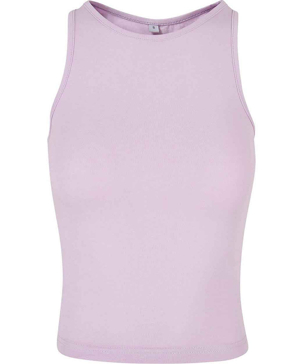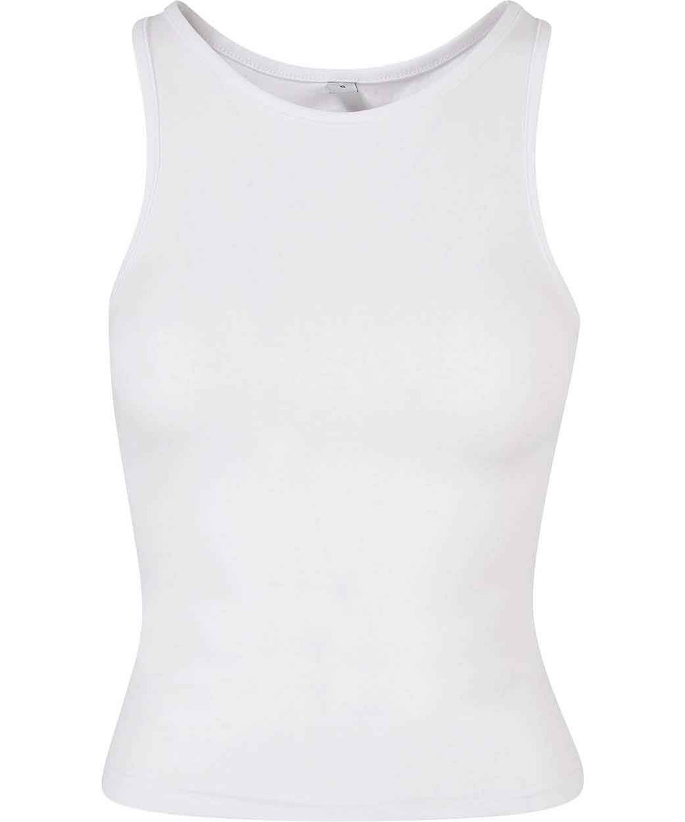 Equipped with a dynamic, sporty racerback cut, the otherwise plain, single-coloured women’s top sets a style statement. This women’s top offers a high crew neck on the front, while the cut is slim fit and the length is kept short. A pleasant wear is ensured by a material mix of cotton and elastane. The summery style can be individually refined further, either by flock or screen printing or with embroidery.
