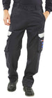 The Click ARC CARC4 features: Flame retardant, Anti-static, ARC Cargo style trousers. 300gsm 60/40 Modacrylic/cotton blend. Inherently flame retardant. Flame retardant qualities will not diminish during life of garment. Triple stitch construction. 7 belt loop part elastic waistband, double button closure. 2 hip pockets. Rear patch pocket with Velcro closure flap. Large bellows pocket to each leg with Velcro closure flap. Right leg mobile phone pocket with Velcro closure flap. All pocket flaps with Retro-reflective tape feature. Internal knee pad pouches. Large qualifying icons on left leg pocket. EN ISO 13688:2013 - General requirements for protective clothing. EN 1149-3:2004 - Anti Static - Test methods for measurements of charge decay. EN 1149-5:2008 - Anti Static - Material performance and design requirements. EN ISO 11611:2007 (Class 1 A1 A2) - Protective clothing for use in welding. EN ISO 11612:2008 (A1 A2 B1 C1) - Protection against heat and flame. ARC IEC 61482-2:2009 - Performance requirements and design requirements. EN 61482-1-2:2007 (Class 1 = 4kA) - Box Arc testing. EN 61482-1-1:2009 (ATPV = 10.8 Cal/cm2) - Open Arc testing. Short leg: 30", Regular leg: 32", Tall leg: 34"