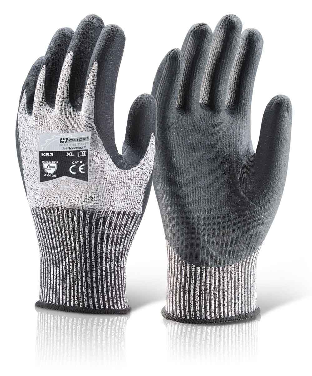 Cut Resistant. Nitrile micro foam palm coating. Dexterity with comfort. EN388 Mechanical scores: 4 - Abrasion, 3 - Cut Resistance, 4 - Tear Resistance,2 - Puncture Resistance.