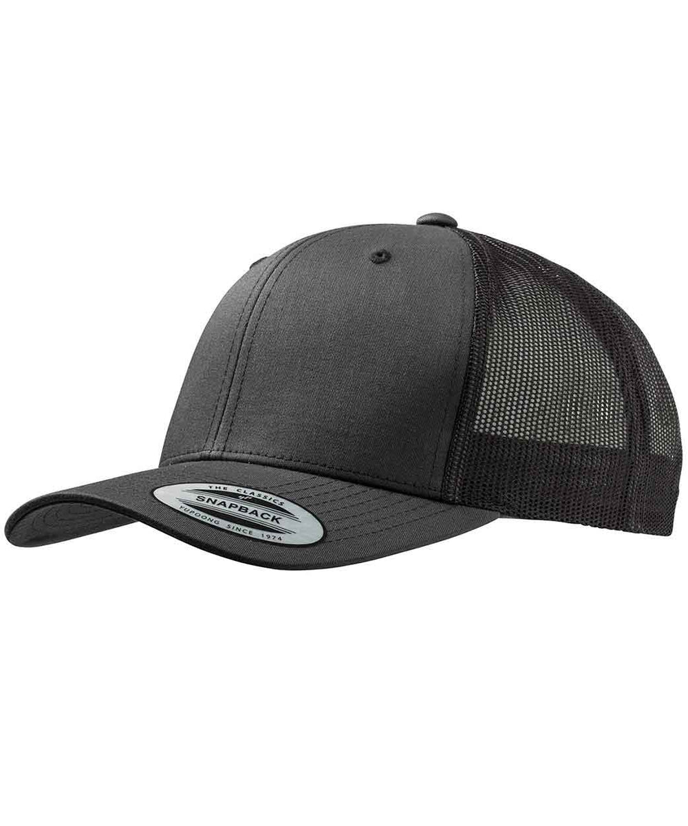 A retro trucker 2-tone cap with 6-panels and curved visor. This popular cap with mesh features, matching under visor and has a plastic adjustable strap. Made from cotton blended fabric and part of the Flexfit® classics range.