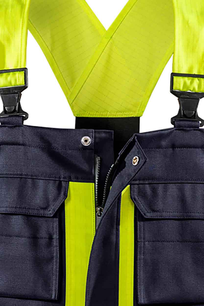 Front placket opening with two-way, full-length front zip and concealed snap fastening / 2 CORDURA® reinforced chest pockets with flap and concealed snap fastening, 1 with D-ring / 2 front pockets / Double reinforced crotch seam / 2 CORDURA® reinforced back pockets with flap and concealed snap fastening / Hammer loop / CORDURA® reinforced folding rule pocket with flap and concealed snap fastening, pen pocket and button and loop for sheath knife / Leg pocket with flap and concealed snap fastening, mobile phone pocket with flap and velcro fastening / Aramide reinforced knee pockets with outside opening with velcro fastening / Height adjustment for knee pads in knee pocket / Approved according to EN 61482-1-2 APC 1, EN 61482-1-1 ELIM: 13 cal/cm² ATPV: 19 cal/cm², EN ISO 11612 A1 A2 B1 C1 E3 F1, EN ISO 11611 A1, A2 class 2, EN 1149-5, EN 13034 Type PB (6), EN 14404 together with kneepads 124292 / Approved after 50 washes / Leasing laundry-tested according to ISO 15797. IEC 61482-2 - Electric Arc Box test and Open arc test. Certified protective clothing. With ELIM value.;EN ISO 11612 - Heat and flame. Certified protective clothing.;EN ISO 11611 - Welding and allied processes. Certified protective clothing.;EN 1149-5 - Electrostatic properties, design requirements. Certified protective clothing.;EN 13034:2005+A1:2009 - Liquid chemicals, limited protection Certified protective clothing.;EN 14404 - Knee protection. Certified protective equipment.