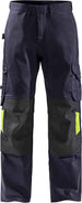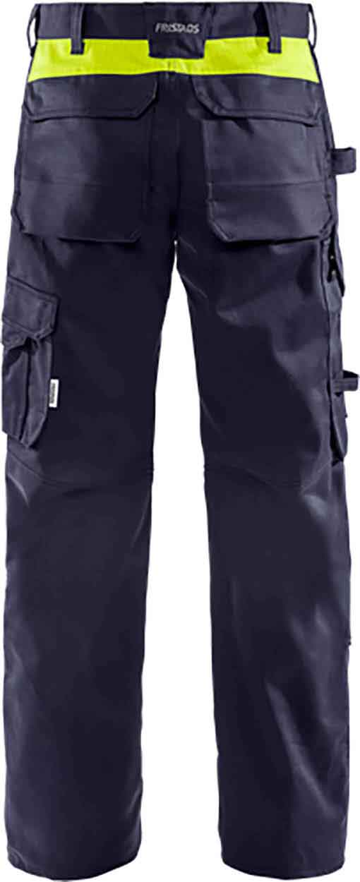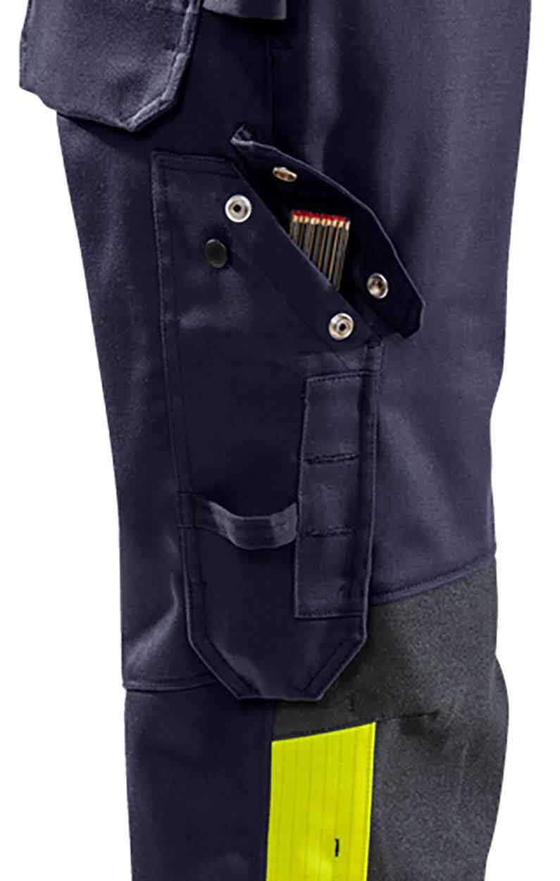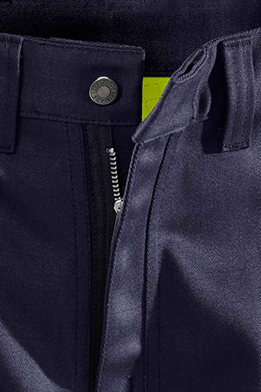 2 front pockets / Double reinforced crotch seam / Hammer loop / 2 CORDURA® reinforced bellowed back pockets with flap and concealed snap fastening / CORDURA® reinforced folding rule pocket with flap and snap fastening, pen pocket and button and loop for sheath knife / Leg pocket with flap and and concealed snap fastening, mobile phone pocket with flap and velcro fastening / Aramide reinforced knee pockets with outside opening with velcro fastening / Height adjustment for knee pads in knee pocket / Approved according to EN 61482-1-2 class 1, EN 61482-1-1 ELIM: 13 cal/cm² ATPV: 19 cal/cm², EN ISO 11612 A1 A2 B1 C1 E3 F1, EN ISO 11611 A1, A2 class 2, EN 1149-5, EN 13034 Type PB (6), EN 14404 together with kneepads 124292 / Approved after 50 washes / Leasing laundry-tested according to ISO 15797. EN ISO 11612 - Heat and flame. Certified protective clothing.;EN ISO 11611 - Welding and allied processes. Certified protective clothing.;EN 1149-5 - Electrostatic properties, design requirements. Certified protective clothing.;EN 13034:2005+A1:2009 - Liquid chemicals, limited protection Certified protective clothing.;EN 14404 - Knee protection. Certified protective equipment.;IEC 61482-2 - Electric Arc Box test and Open arc test. Certified protective clothing. With ELIM value.