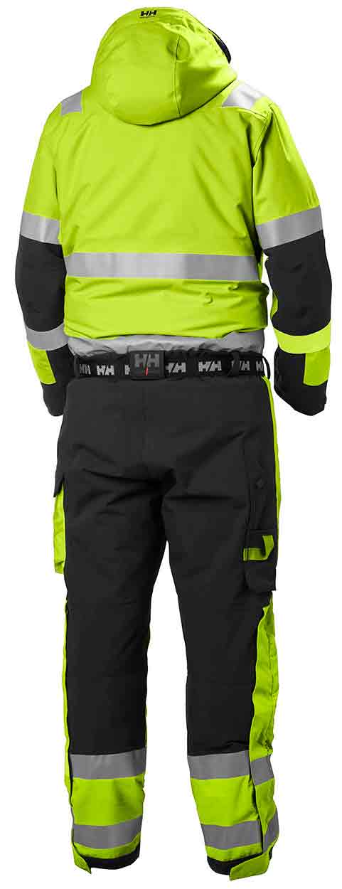A true Hi Vis winter suit designed and developed together with several professional users. The suit is fully wind and waterproof with lots of well thought-through features. It has arm and leg gaitors, leg zippers to the knees, Life Pocket™, hand pockets and an extended back to ensure optimized fit during long workdays