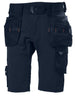 Features: 93% Polyamide, 7% Elastane |79% Cotton, 21% Polyester - 295 g/m2 |4-Way Stretch Fabric|YKK zipper |Cordura fabric reinforced hanging pockets |Hanging pockets with zipper for small tools |Back pockets |Loop with double Velcro on both sides for hammer holder |Thigh pocket with flap for accessories/tools |Broad belt tunnel for extra strength and stability at the back |Extended back for better comfort |Gusset at crotch | ID-Card loop |Ruler pocket|