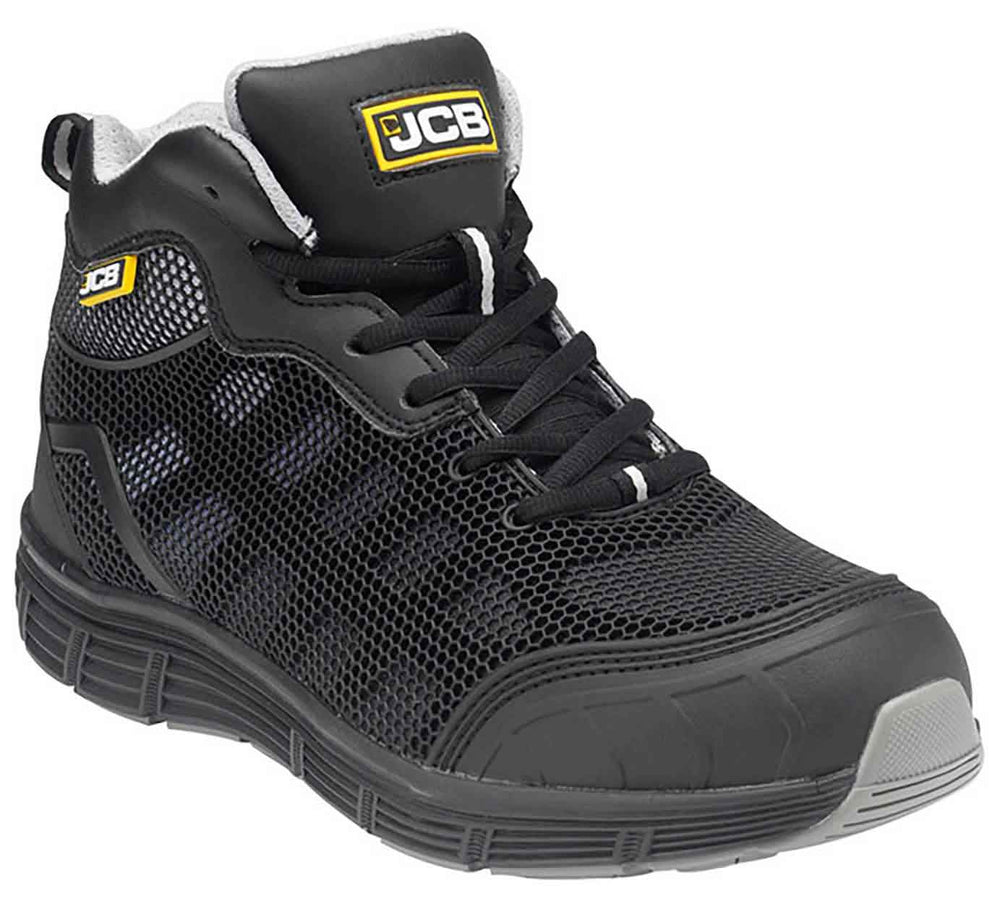 • Grey and black KPU mid cut boot• Dark grey breathable mesh lining• Padded tongue and collar• Five eyelet fasten• Antistatic• Steel toecap and midsole• TPU protection to heel and toe• Dual density EVA and rubber sole• SRC slip resistant• EN ISO 20345:2011 S1P SRC