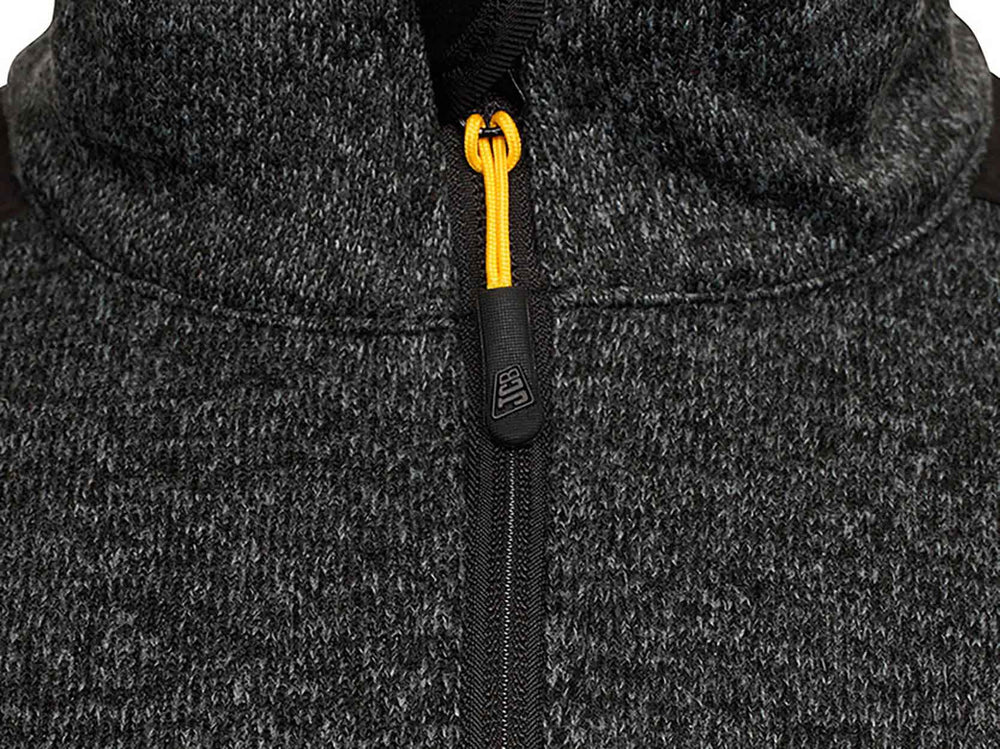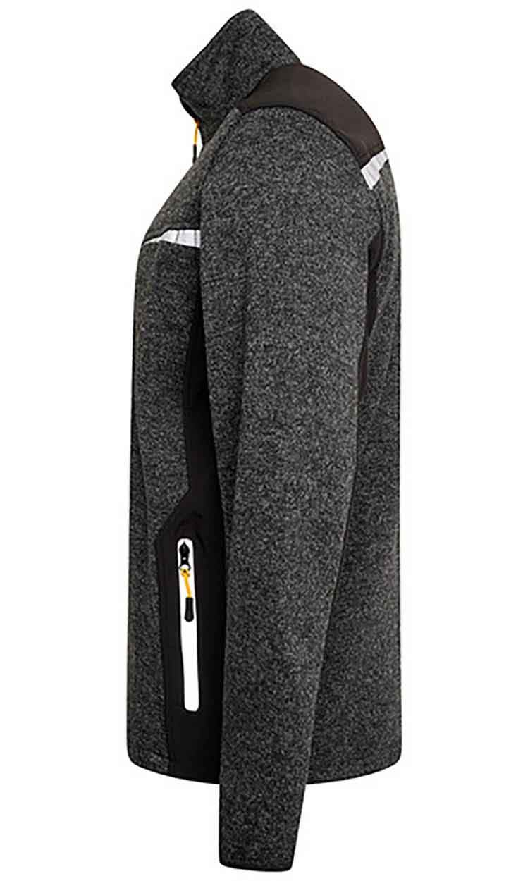• Knitted fabric: 100% polyester 370gsm• Softshell fabric: 100% stretch polyester 280gsm• Quarter zip style• Two side zip pockets• Elasticated taped cuffs• Elasticated drawcord around bottom hem• Reflective tape on chest and shoulders• Reflective JCB branding