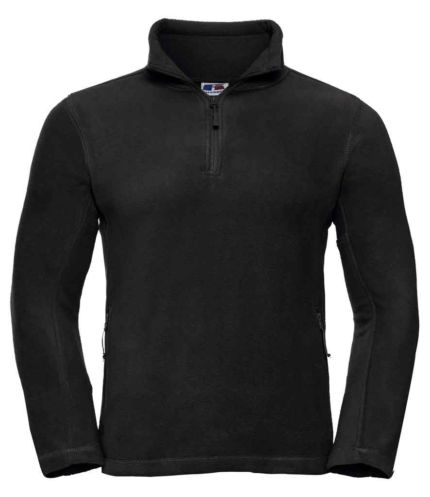 The Jerzees 8740M Zip Neck Outdoor Fleece in 100 percent polyester. Anti-pill, dense compact fleece. Unlined. Panel design with cover stitching detail. Two front zip pockets. Hemmed cuffs. Adjustable drawcord waist. The Jerzees 8740M Zip Neck Outdoor Fleece has a fabric weight of 320gsm.