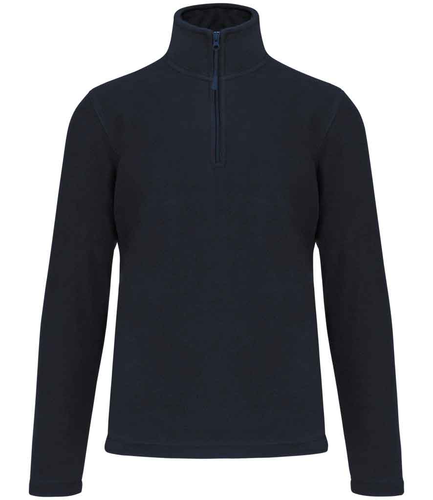 Kariban Enzo Zip Neck Micro Fleece. Pill resistant. Unlined. Zip neck. Two side pockets. Cover stitching detail. Open cuffs and hem. 300 gsm. 100% polyester micro fleece.