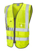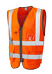Fabric: 100% Knitted Polyester, Airflow Mesh. Features: Railway Standard GO/RT 3279 (in Orange only), Deeper Arm Holes, Scooped Sides Allowing Pocket Access, ID Pocket, Mobile Phone Pocket, 2 Front Bellowed Storage Pockets, Double Pen Pocket with D Ring. Fastener: Zip. Reflective Tape: Retromax. ISO 20471 Class: 2 Length: 76-81cm