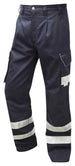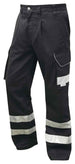 Garment features include: Triple Stitched Main Seams, Cargo Style Leg Pockets with Reflective Piping, Internal Knee Pad Pockets, Back Pocket with Reflective Piping, Side Waist Elastic, 7 Belt Loops. Fastener: Metal Button with YKK Zip Fly. Reflective Tape: 3M Scotchlite.ISO 20471 Class: Non Compliant