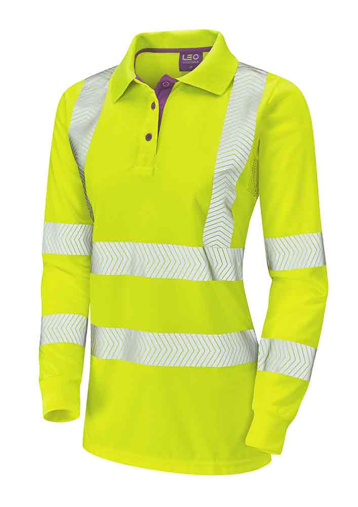 The Pollyfield features: Railway Group Standard GO/RT (in Orange only), Mesh Ventilated Under-arms & Side Seams, Segmented Reflective Tape, Split Hem Design, 3 Button Placket with Contrast Fuchsia Lining & Buttons.
