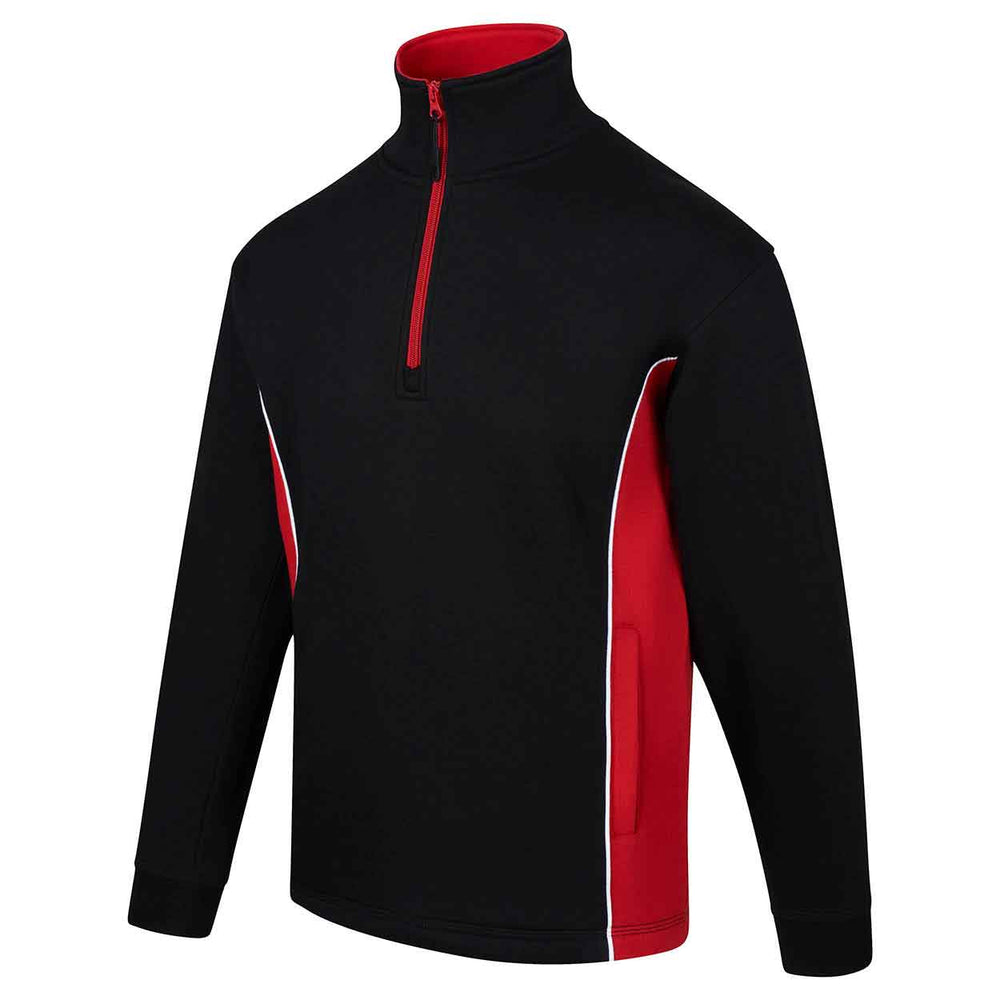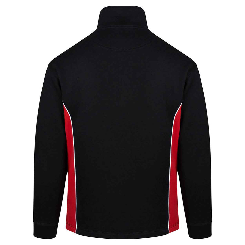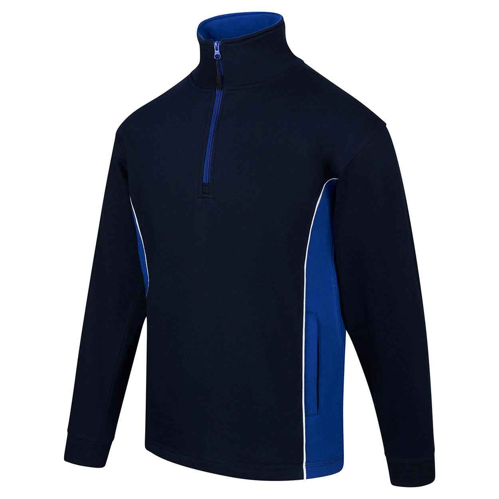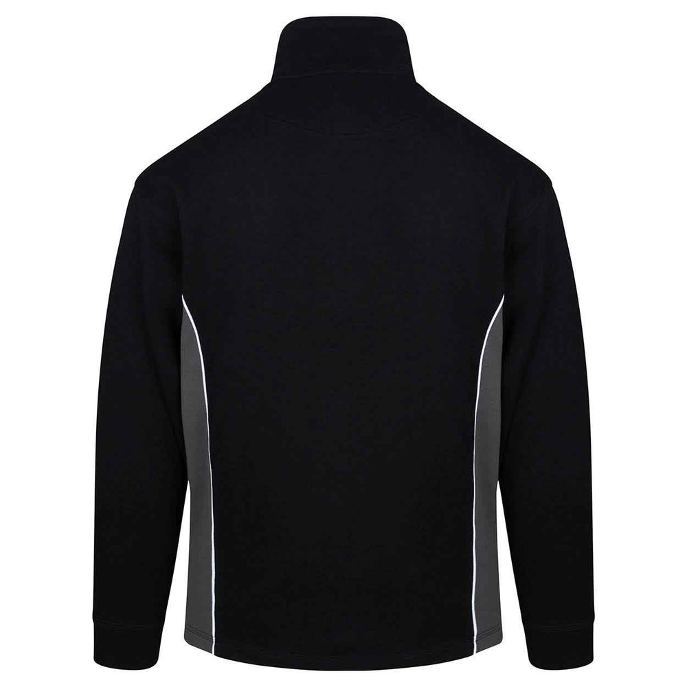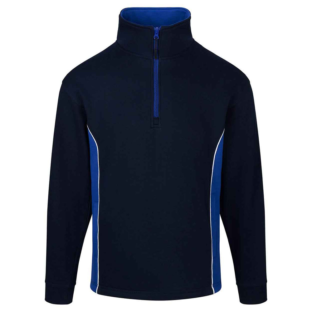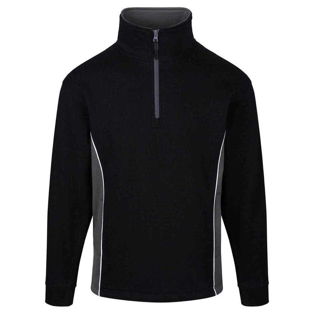 High quality, premium weight, quarter zip sweatshirt Elasticated cuffs and open hem styling on the waistband Brushed fleece inner for superior comfort Half moon yoke at neck Contrasting side panels Matching contrasting quarter zip and trim on collar Triple stitched on all main seams for ultimate strength Matching poloshirt, softshell and trousers are available