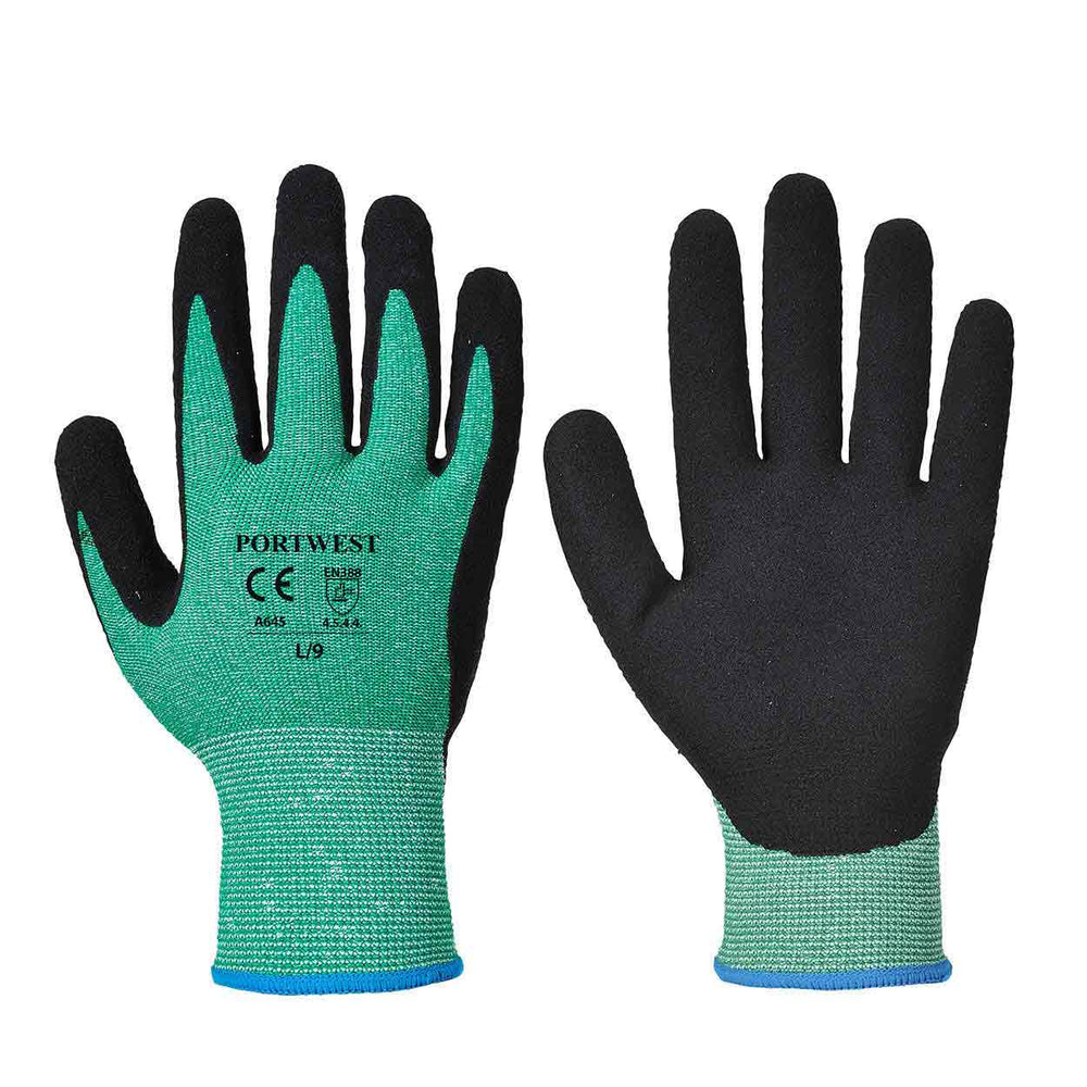 The Portwest A645 Cut D13 Nitrile Green Glove features: