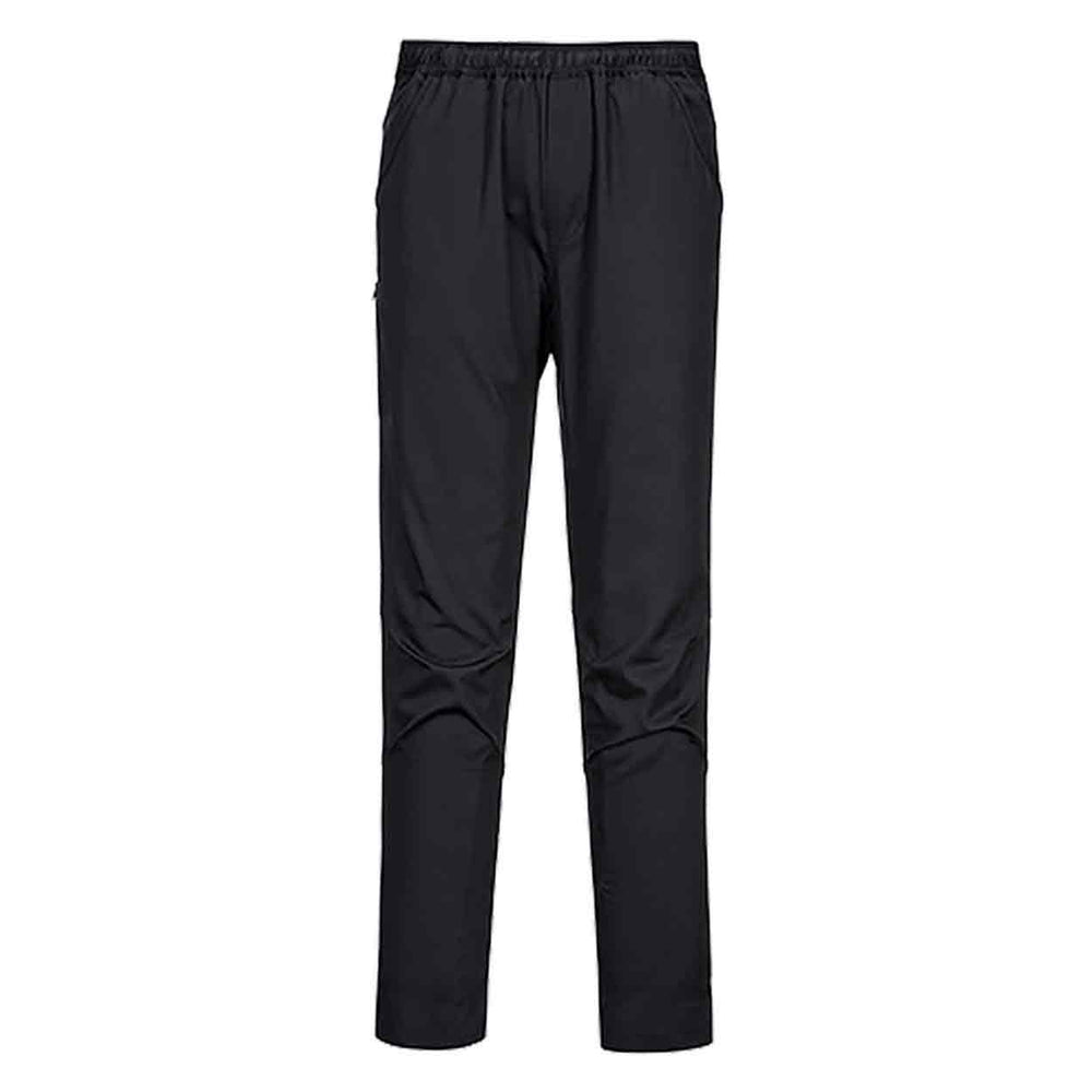 This slim fit, lightweight trouser is finished with a Texpel coating allowing liquids to roll off the fabric. The MeshAir Pro gusset, back waist panel and back of knee panel offer maximum breathability in hot kitchen environments. Other features include back hip pocket, zipped thigh pocket, fully elasticated waist with draw cord, and articulated knee darts allowing better mobility.