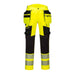 The DX4 Detachable Hi-Vis Holster Trouser is ergonomically designed and uses the targeted placement of dynamic 4X stretch fabrics to give maximum range of movement when working. The trouser features a high-rise back waistband with side elastication, ensuring protection in all working positions. Pre-bent top loading adjustable knee pad pockets, generously sized front pockets and multi-functional zip thigh pockets offers secure storage. Triple stitching throughout for maximum durability.