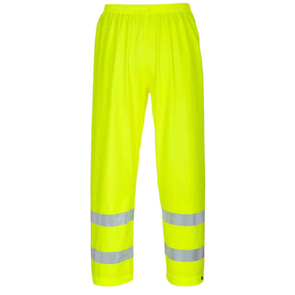 These trousers are waterproof and windproof and offer excellent protection against harsh elements. Features include adjustable hems to ensure easy on and off for the wearer. Heat sealed EN ISO 20471 reflective tape for added visibility.