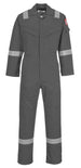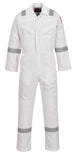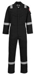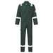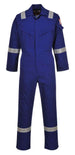 This coverall is perfect for the demands of the offshore industry. Constructed with a highly innovative flame-retardant fabric with high visibility reflective tape double stitched for enhanced visibility. Meeting all the required EN standards, features include triple stitched seams, high visibility strips on shoulders, arms and legs, concealed 2-way front brass zip and two front slant chest pockets with concealed brass zips.
