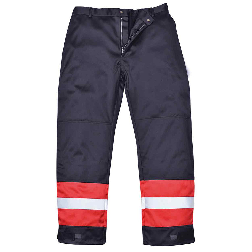 This trouser is constructed with high visibility reflective tape double stitched for enhanced visibility. Features include triple stitched seams, high visibility strips on legs, knee pad pockets, ruler pocket, front fly brass zip and adjustable bottom leg opening.