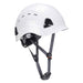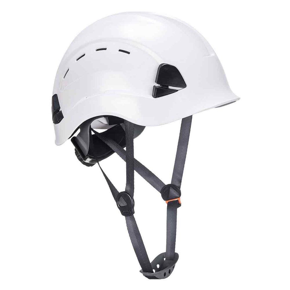 Our premium Height Endurance Helmet is available in a vented version, for extra air flow. Light, comfortable and compact, this peak-less helmet is designed to be used when working at heights. Clever features include an ABS shell, 6-point textile suspension harness, wheel ratchet adjustment, size 52-63cm. Technical sweatband and 4-point chin strap (Y style) with a soft rubber chin protector included.