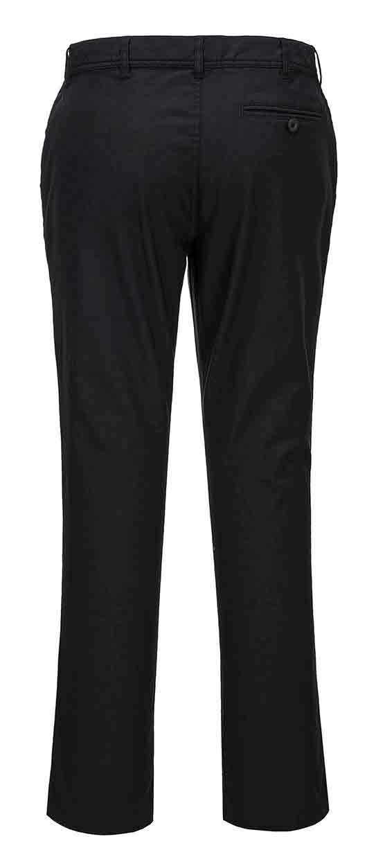 This slim fit stretch chino is the perfect uniform solution. It offers a contemporary slim fit in a dynamic cotton stretch twill fabric. The stretch fabric gives the ultimate in comfort and freedom of movement. Features include side pockets, a rear buttoned jetted pocket and a hook and bar waist fastening. Highly durable with twin stitching throughout and bar-tacked at all stress points.