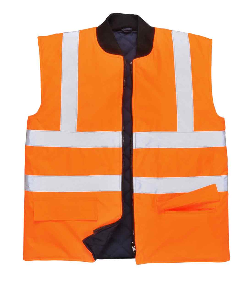 This cleverly designed reversible bodywarmer traps heat to keep you warm when worn either way. The Hi-Vis side of the garment provides added visibility and safety for the wearer when needed. Can interact with style S468.