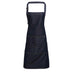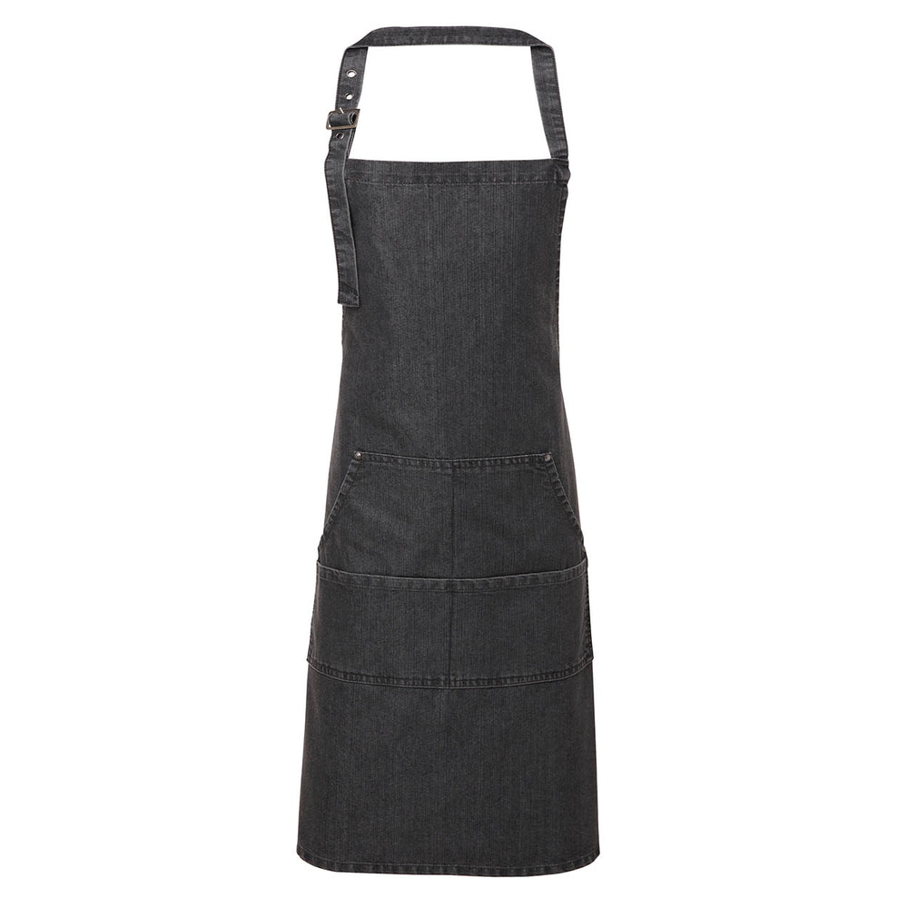 The Premier PR126 Jeans stitch bib apron features: Denim bib apron with contrast stitching. Adjustable buckle on the neckband. Copper rivets. Four pocket compartments. 86cm long and 72cm wide. Washing Instructions: Domestic wash 60 Deg c. Industrial laundry 85 Deg c. Contrast stitching 4 pocket compartments Adjustable buckle on neckbandFabric70% Cotton, 30% Polyester twillWeight265gsm. One size. One size