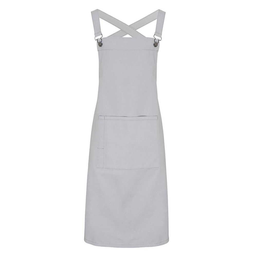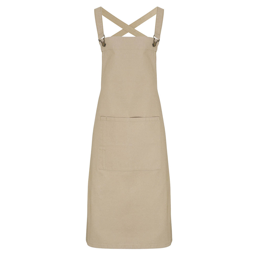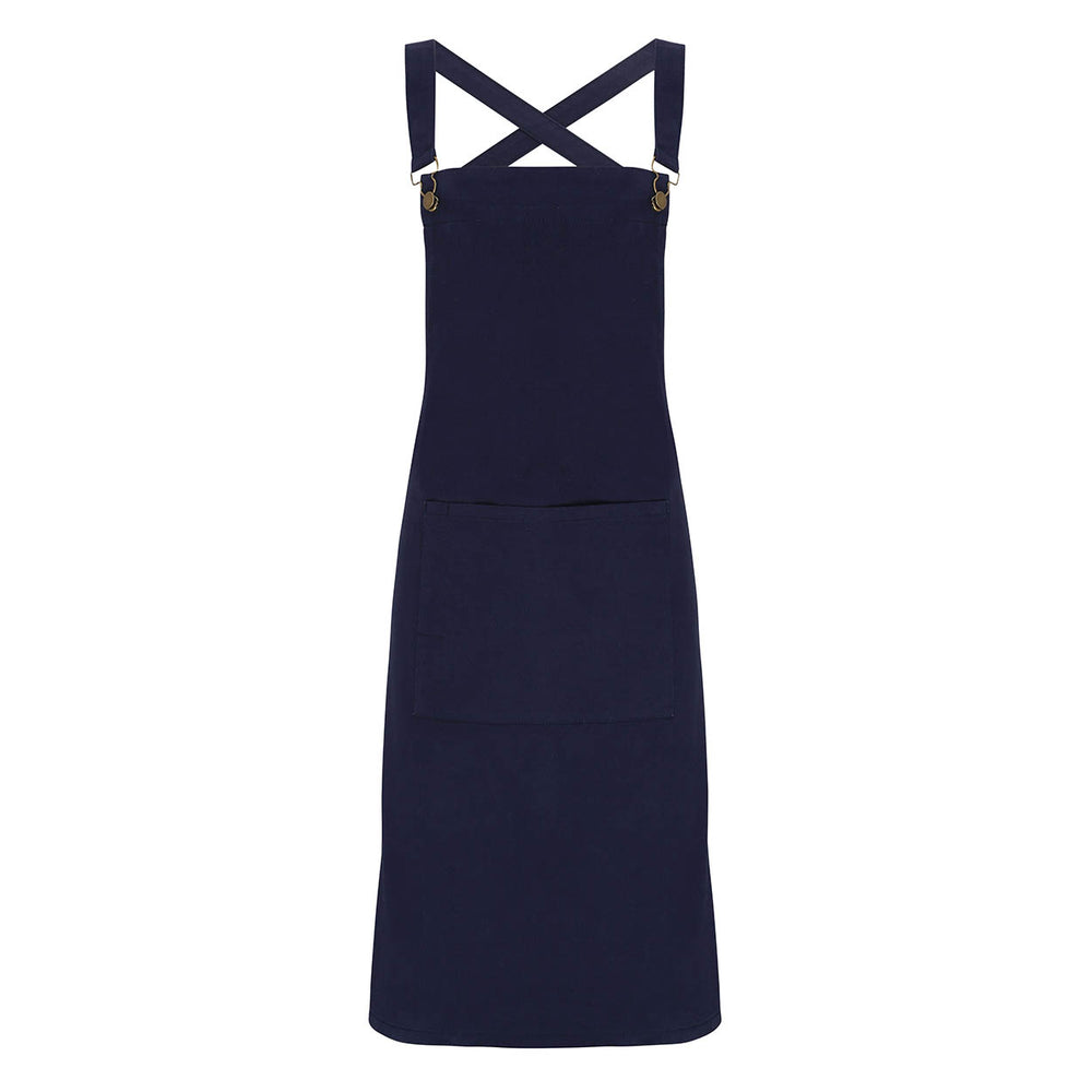 Self-fabric ties that are fastened to the main body of the apron with dungaree style buckles. The straps then hook over the shoulders, cross over at the back, loop through the large eyelets at the waist and tie neatly at the back. Also features a useful front centre pocket with combined pen slot. This style is designed to be paired with our PR119 Interchangeable apron straps should you want a contrast colour or fabric to the main body of the apron.