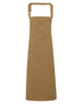 A full bib apron with style features taken from the popular 'chino' style. A stitched patch pocket with rivets features at the centre top and two side pockets big enough to carry tablet devices sit just below waist height. The neck strap is loose and the wearer can loop the end through the buckle and use the pop-snap buttons to fasten in place.