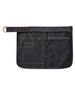 Hip apron with adjustable self-fabric waistband. D-ring and carabiner fastenings. Jeans style stitched pockets. Zipped pocket.