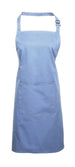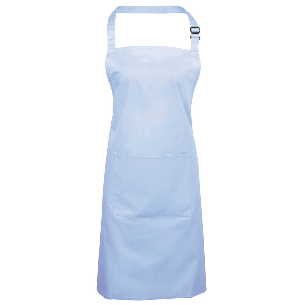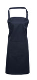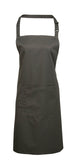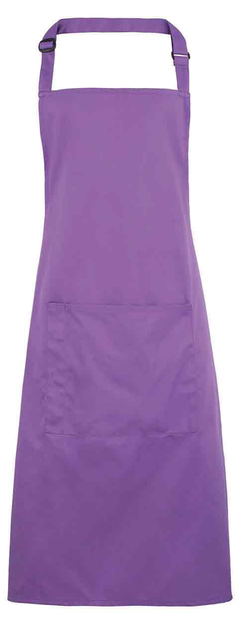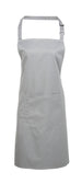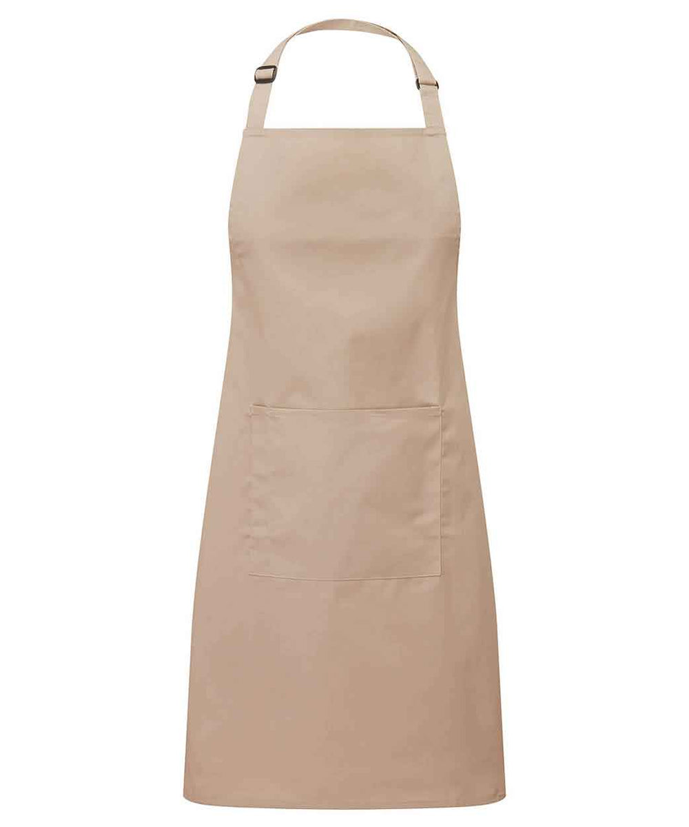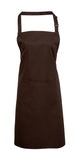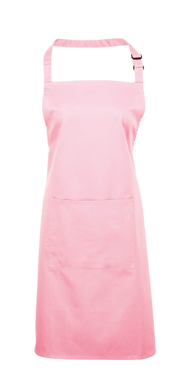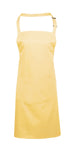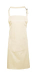The Premier PR154 Bib Apron with Pocket is made from high quality 65% Polyester / 35% Cotton Twill, that is suitable for industrial laundry up to 85C and domestic washing up to 60C. A single front pocket with a combined pen pocket. Self fabric neck tie with sliding adjustable buckle to allow for both tall and shorter users. Self fabric 90cm long ties. Width 72cm. Length 86cm. Fabric weight of the PR154 Pocket Bib Apron is 195gsm.