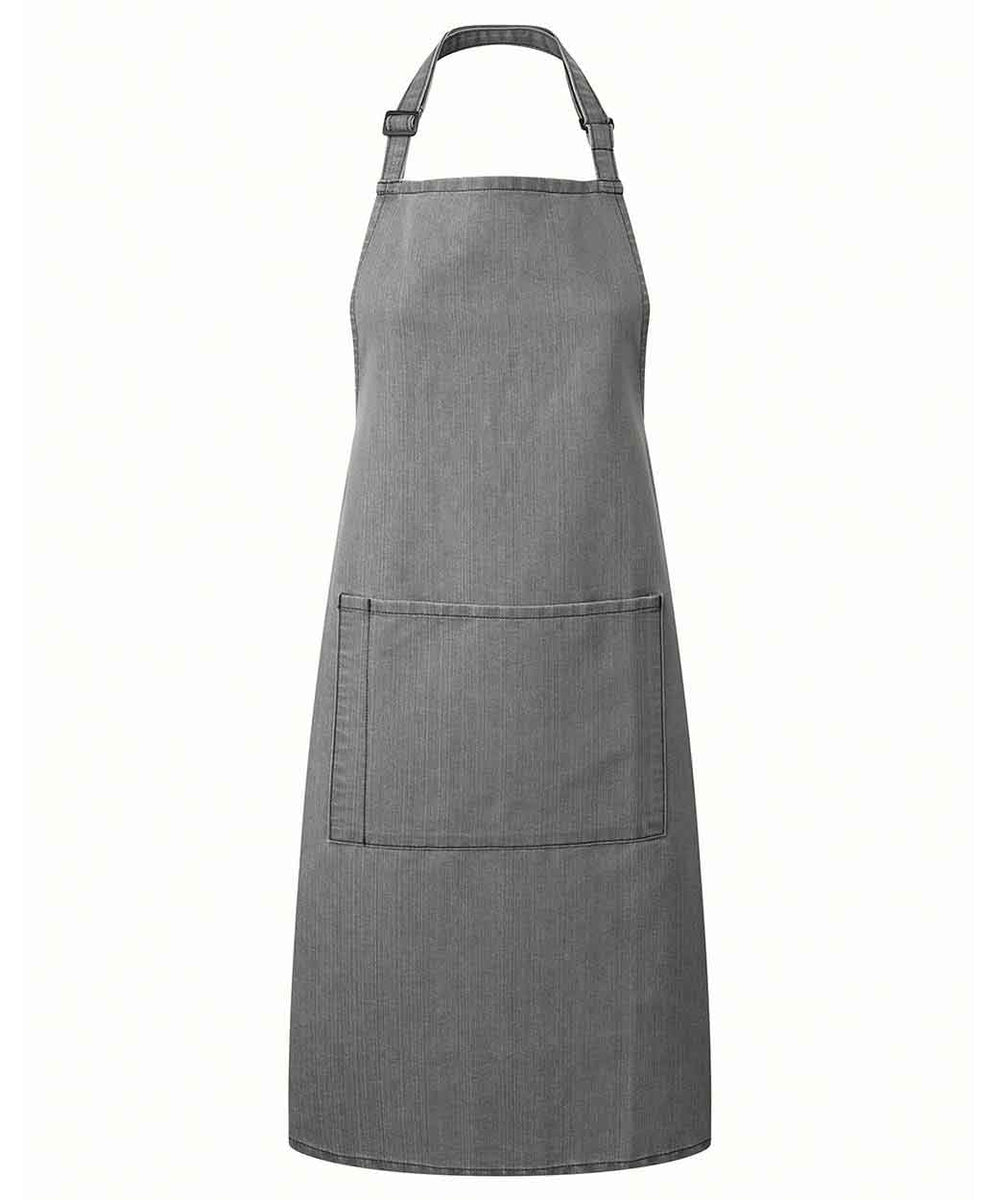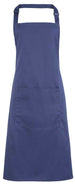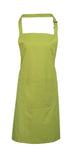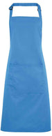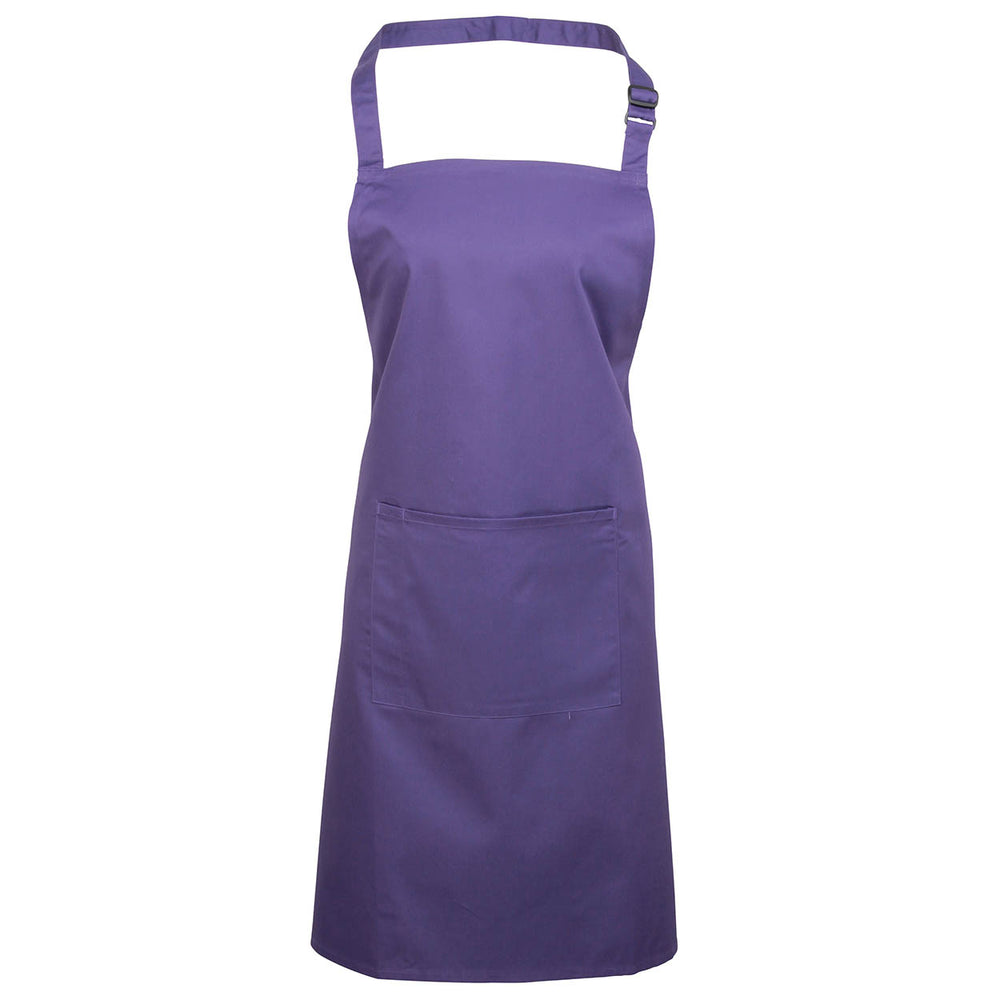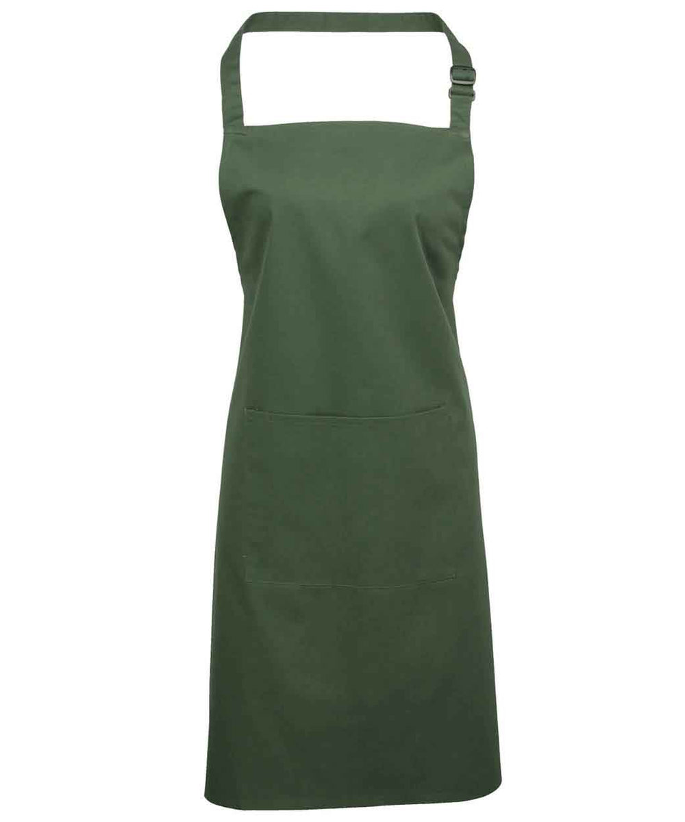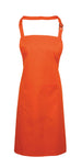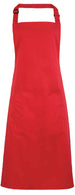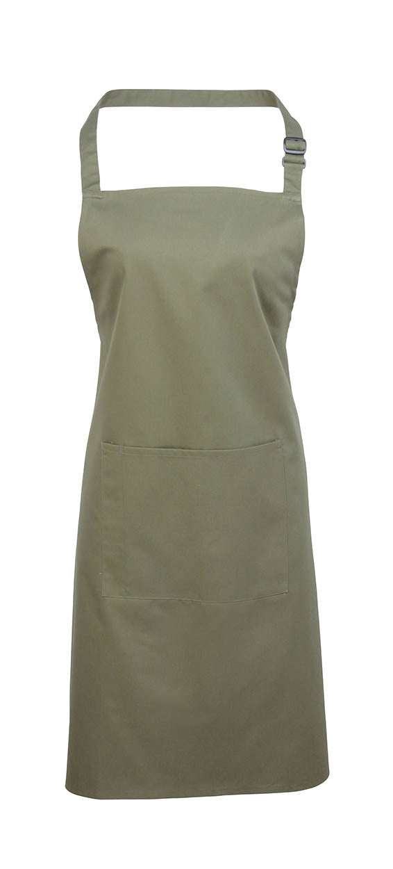 The Premier PR154 Bib Apron with Pocket is made from high quality 65% Polyester / 35% Cotton Twill, that is suitable for industrial laundry up to 85C and domestic washing up to 60C. A single front pocket with a combined pen pocket. Self fabric neck tie with sliding adjustable buckle to allow for both tall and shorter users. Self fabric 90cm long ties. Width 72cm. Length 86cm. Fabric weight of the PR154 Pocket Bib Apron is 195gsm.