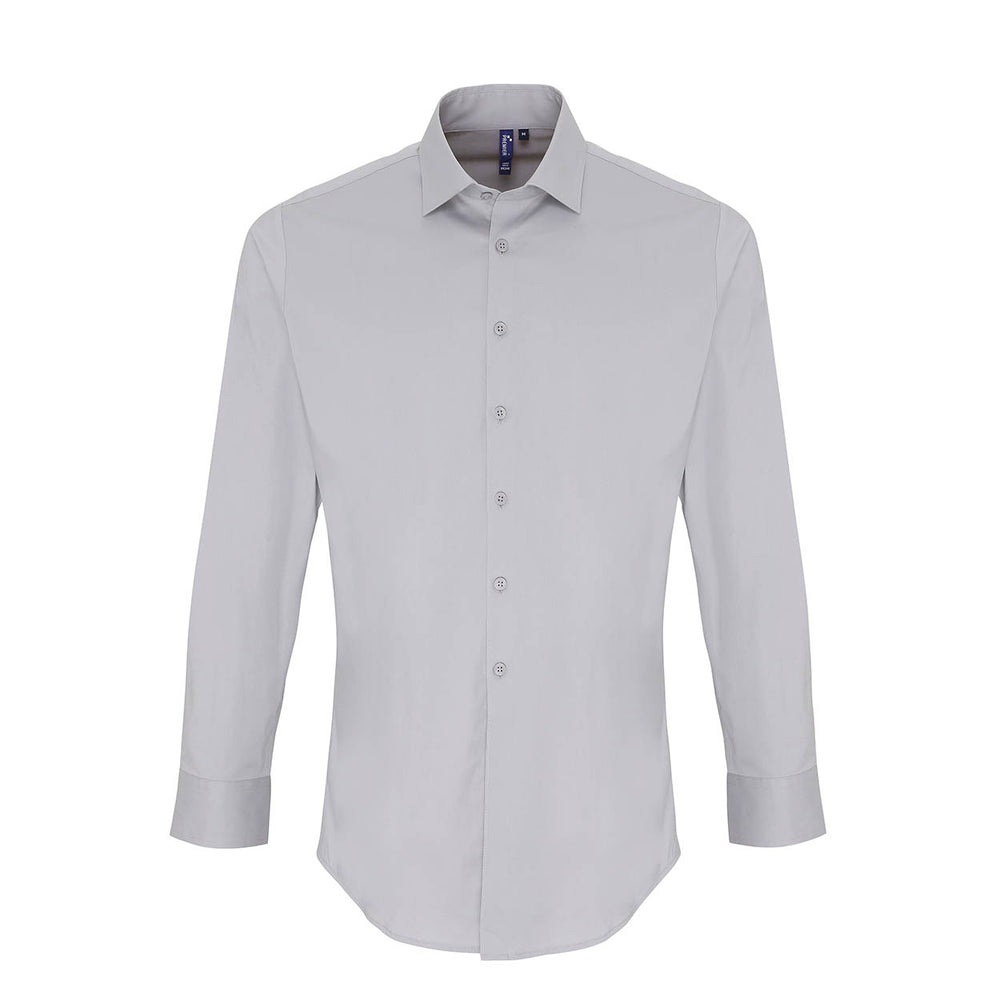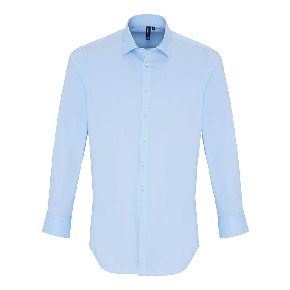 Cotton combined with elastane makes for a super soft, stretchy and comfortable fitted style for men. Double buttons on the cuff, together with a single button sleeve guard, allows for either a formal arm or a more casual roll back option. Styled with a stiffened cut-away collar with top button - which again, can be worn formally with a tie or open collared for a more relaxed look.