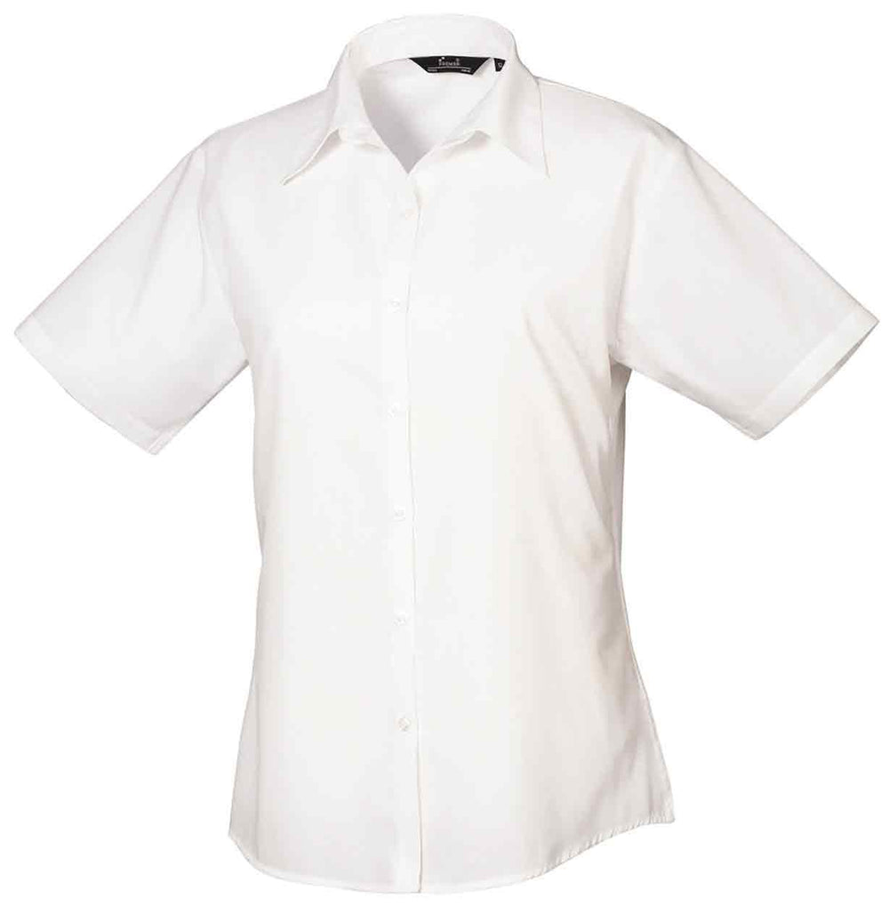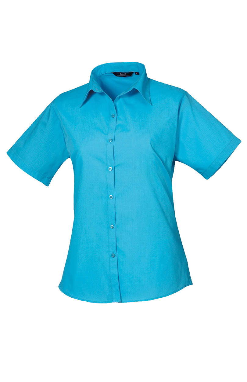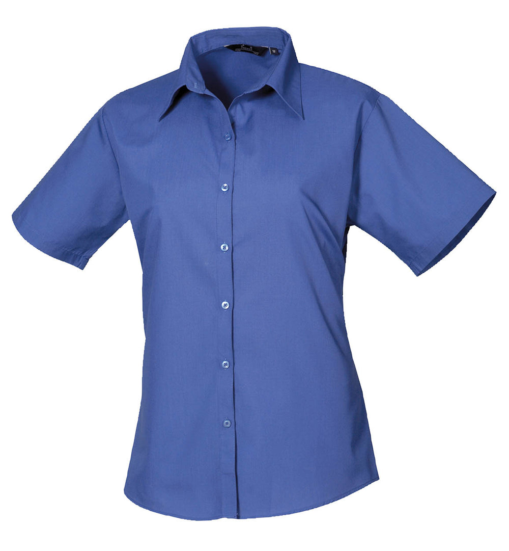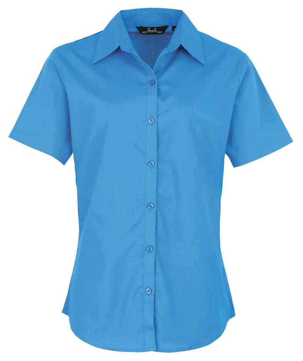 The Premier PR302 Ladies Short Sleeve Poplin Blouse can be personalised with either print or embroidery.