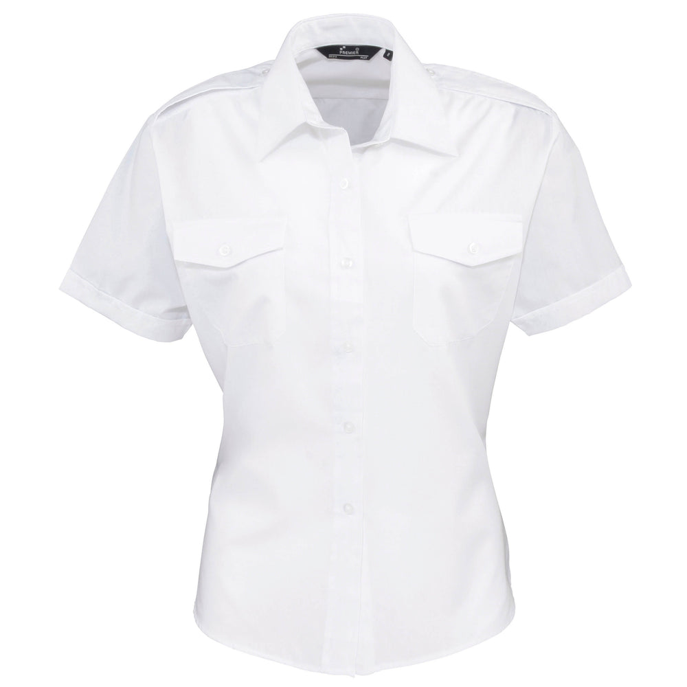 The Premier PR312 Ladies Short Sleeve Pilot Shirt can be embroidered with a company logo or your text of choice.