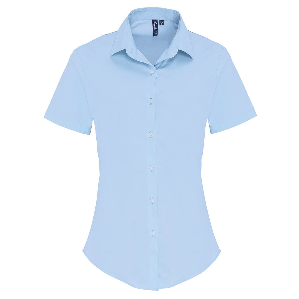 Cotton combined with elastane makes for a super soft, stretchy and comfortable fitted style for ladies. A soft cut-away collar with top button which can be worn formally with a scarf or open collared for a more relaxed look.