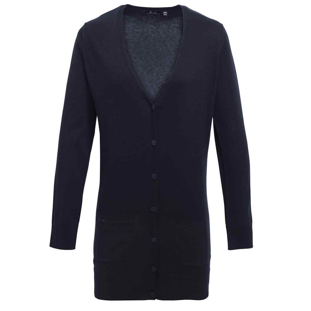 The Premier PR698 Women's longline knitted cardigan features: Long length cardigan with cotton rich yarn for a soft feel. Fine gauge knit. Five self-coloured buttons. Two front patch pockets. Ribbed knit V-neck, cuffs and hem. Washing Instructions. Domestic wash 40 Deg c. Cotton-rich yarn 5-button fastening 2 front patch pocketsFabric55% Cotton, 45% AcrylicWeight12 Gauge. 45505. 8 33 10 35 12 37 14 39 16 41 18 43 20 45 22 47 24 49