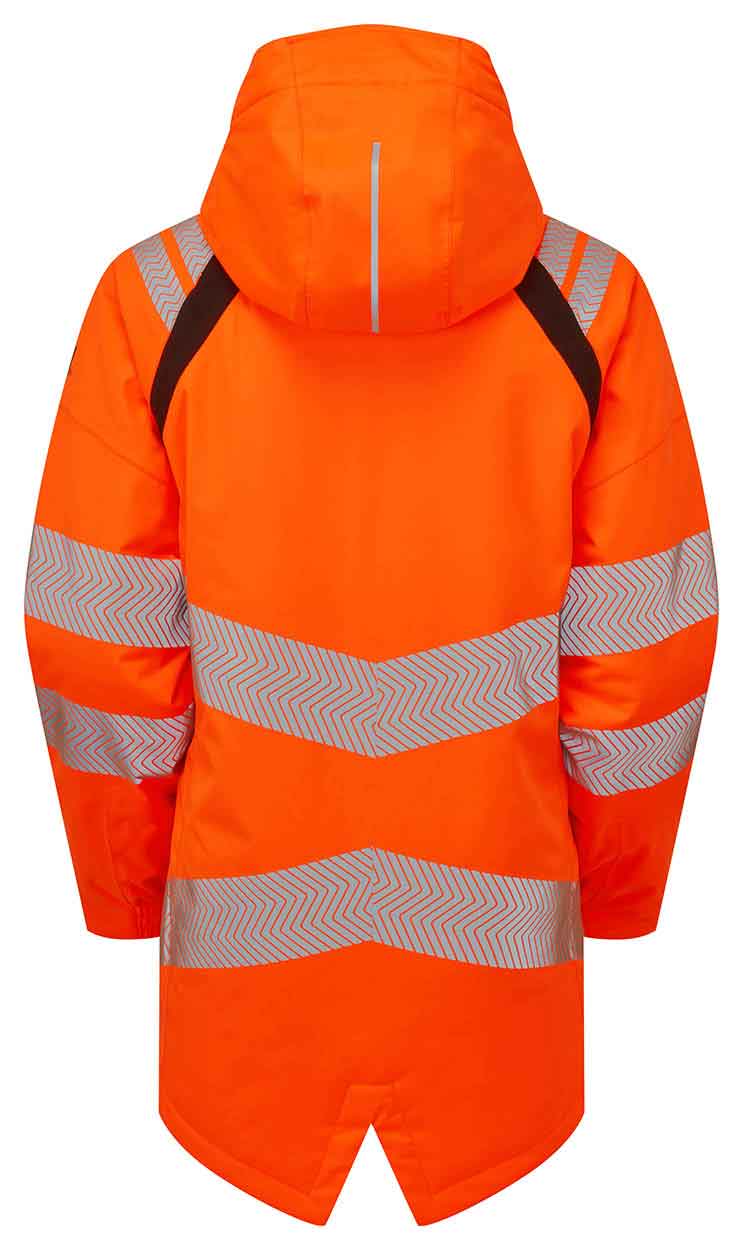 GRS 62% recycled polyester wind and waterproof PU 2-layer laminate fabric Waterproof 2-way main zip Double chest waterproof zips with geometric pattern 2 lower hidden waterproof pockets and 2 internal zip pockets Zip pulls made from recycled TPU 7cm segmented heat applied reflective tape to body and sleeves with 2.5cm wide heat applied segmented reflective shoulder tape Detachable, adjustable helmet compatible hood with reflective trim GRS 100% recycled polyester sewing thread used throughout Form fitted cuffs for extra comfort Elastic shockcord made from GRS 100% recycled polyester GRS 45% recycled brass eyelets and press studs used throughout Thermolite® 200gsm 35% recycled polyester from post consumer waste
