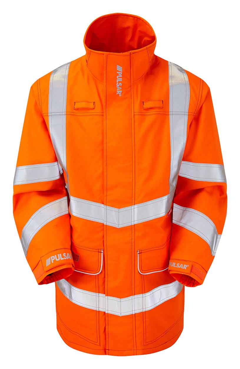 Inherently flame retardant & anti-static Twin stitched FR reflective tape 3-layer laminate fabric Adjustable and elasticated cuffs for superior fitting Flame retardant lining and pocket bags, as well as FR piping on pocket flap edges 2 outer pockets with flaps with velcro closure Inner pockets & poachers pockets Concealed pocket behind storm flap Double storm flap and YKK 2 way zip fastening Reflective heat applied brand logos Chest radio/loops on either side Visible EN performance standard transfer