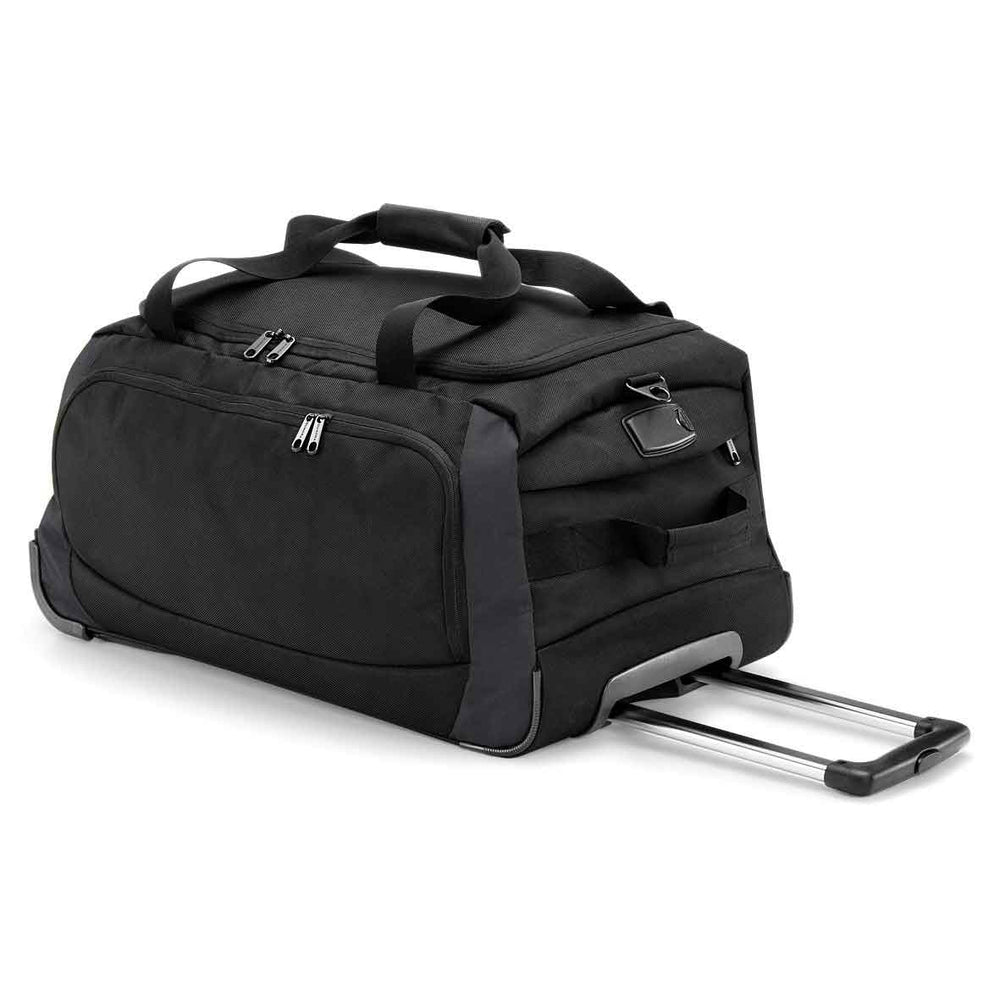 Quadra QD970 Tungsten Wheelie Travel Bag in 1680D polyester fabric. Multiple internal pockets. Retractable tow handle. Detachable adjustable shoulder strap with pad. Heavy duty wheels. Capacity 65 litres. The Quadra Tungsten Wheelie Travel Bag matches QD967/968/971.