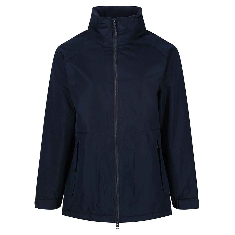 The Regatta Professional TRA306 Women's Hudson Fleece-Lined Jacket is constructed from an array of high-tech materials such as a waterproof Hydrafort polyester matrix dobby fabric, a 200 series anti-pill Symmetry fleece lining, and features Thermo-Guard insulation to sleeves. It is multi-pocketed (2 zipped lower pockets, mobile phone pocket, inside pocket) and other special features include; a concealed hood with adjuster, adjustable cuffs, adjustable shockcord hem, studded side adjusters and a concealed zip entrance for embroidery access. Matches the mens Hudson Fleece-Lined Jacket (TRA301) but in a shaped ladies fit.