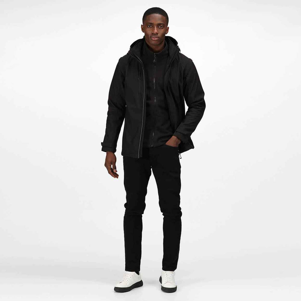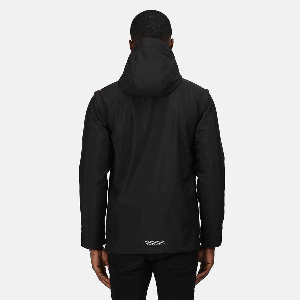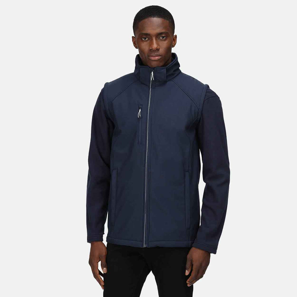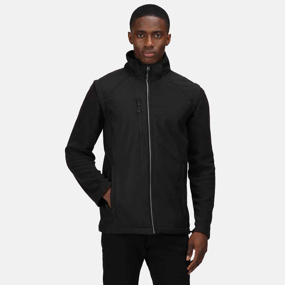 The Regatta Professional TRA713 Erasmus 4in1 Softshell features: • Warm backed woven, waterproof and breathable Softshell XPT fabric • 3 layer wind resistant membrane fabric • 220 series anti-pill Symmetry fleece Inner jacket • Detachable zip-off sleeves
