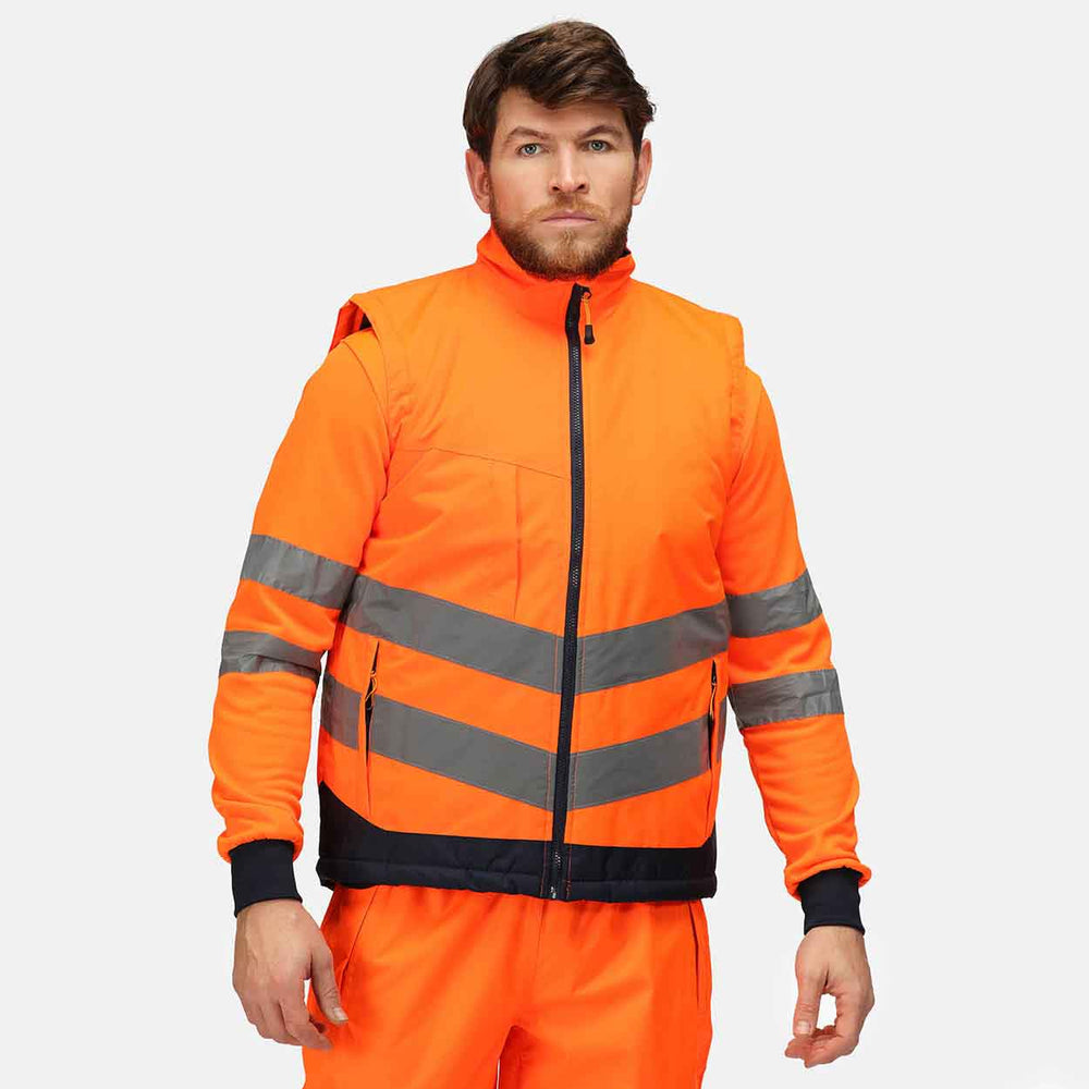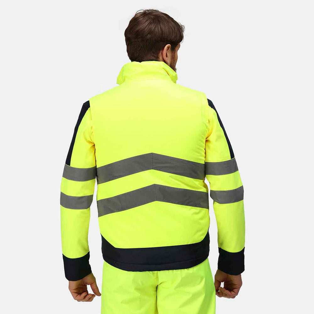 The Hi-vis Pro Insulated men's bodywarmer from Regatta Professional will keep you agile and protected on the job. The hi-vis bodywarmer comes with ID Reflective Technology to show which way you're facing at all angles. The waterproof hi-vis gilet comes with insulation to see off the cold weather.