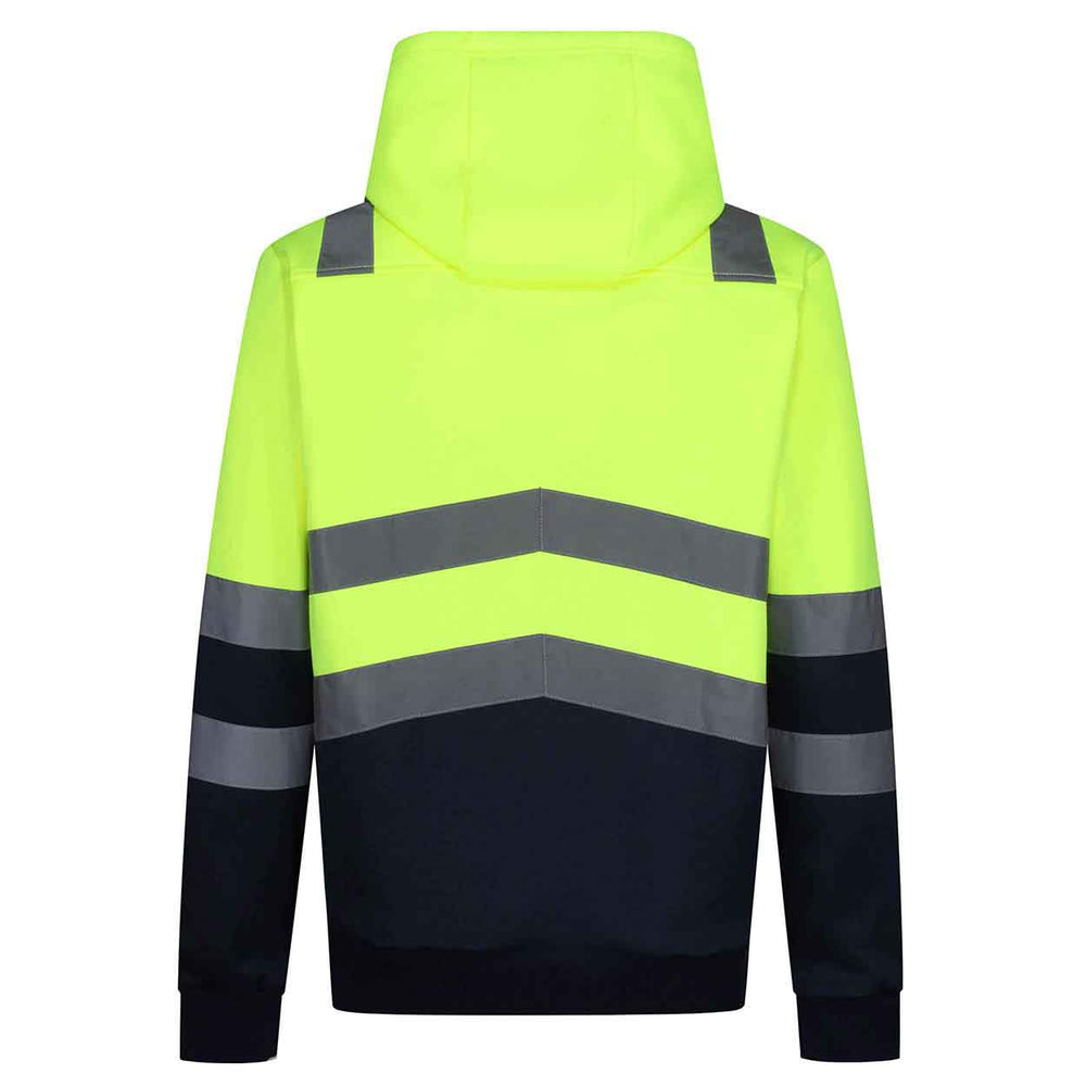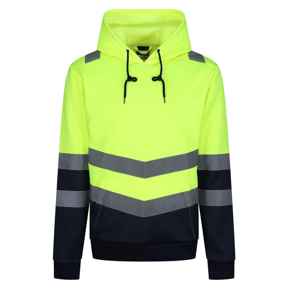 The Regatta Professional TRF663 Pro Hi Viz Hoody features: • 100% Polyester brushed back fabric • Conforms to EN ISO 20471:2013 +A1:2016 Class 2 (orange also RIS-3279/TOM) • Grown on hood with adjusters • Ribbed cuffs and hem with kangaroo pocket